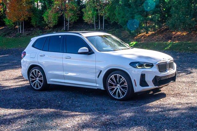 8-Speed Automatic Sport, ABS brakes, Aerodynamic Kit, AM/FM radio: SiriusXM with 360L, Apple CarPlay & Android Auto Compatibility, Brake assist, Comfort Access Keyless Entry, Connected Package Pro, ConnectedDrive Services, Dynamic Damper Control, Dynamic Handling Package, Exterior Parking Camera Rear, Four wheel independent suspension, Front dual zone A/C, Gesture Control, Heated Front Seats, Heated Steering Wheel, Hi-Fi Sound System, Lumbar Support, M Sport Brakes w/Blue Calipers, M Sport Package (337), M Sport Package 2, M Steering Wheel, Memory seat, Navigation, Navigation System, Panoramic Moonroof, Perforated SensaTec Upholstery, Power door mirrors, Power driver seat, Power Front Seats, Power Liftgate, Power passenger seat, Power steering, Power windows, Premium Package 2, Radio data system, Rear air conditioning, Rear window defroster, Remote Engine Start, Remote keyless entry, Roof Rails in High-Gloss Shadowline, Shadowline Exterior Trim, SiriusXM w/360L, Smoke Grey Aluminum Rhombicle Trim, Steering wheel mounted audio controls, Traction control, Turn signal indicator mirrors, Variable Sport Steering, Wheels: 20" x 8.0" Fr & 20" x 9.5" Rr (Style 787M), WiFi Hotspot, Without Exterior Lines Designation. CARFAX One-Owner. 23/29 City/Highway MPG2022 BMW X3 sDrive30i Alpine White sDrive30i RWD 8-Speed Automatic Sport 2.0L I4 TwinPower TurboSpecial pricing ad/promotion is available to customers who reference such pricing and present the ad at the time of sale otherwise store list price applies. Buyer is responsible to verify options/packages. Any error voids the ad. Certified Pre-Owned program available. Same-day delivery In-stock units only. Dealer-installed accessories are extra. Dealer is not responsible for typographical errors. Every vehicle in inventory is equipped with LoJack at an additional cost. The special price expires at the midnight of the publication date. For return & exchange policy visit the website for details. All Prices will be honored as cash prices. Prices do not include the following fees: Doc Fee, tax, tags, DMV fees. Pre-installed LoJack, and Pre-Certification (vary between vehicles) Please visit or call the dealership for complete details.