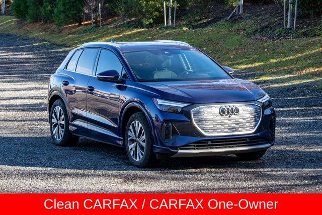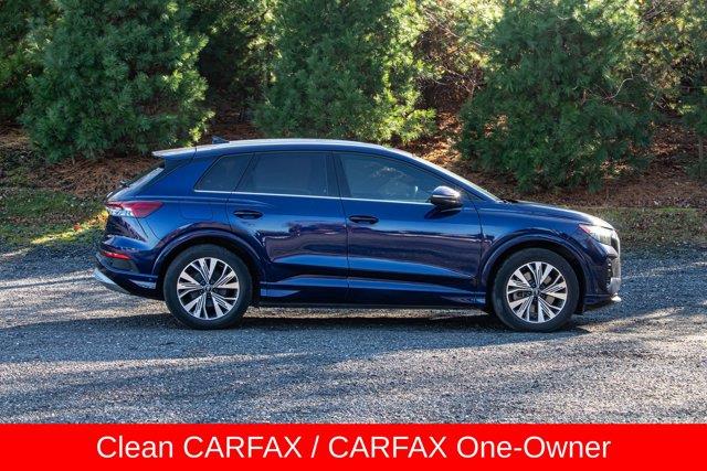 ABS brakes, Adaptive Cruise Assist w/Lane Guidance, Alarm System w/Motion Sensor, Audi Advanced Key, Auto High-beam Headlights, Auto-Dimming Interior Mirror w/Compass, Auto-Dimming Power Folding Exterior Mirrors, Brake assist, Convenience Package, Dual-Pane Acoustic Glass for Front Side Windows, Front dual zone A/C, Fully automatic headlights, Hands-Free Power Tailgate, Heated door mirrors, Heated Front Seats, Heated front seats, Memory for Driver's Seat, Power driver seat, Power Front Passenger Seat, Power Liftgate, Power moonroof: Panoramic, Power windows, Projection Light in Exterior Mirrors, Remote keyless entry, SiriusXM w/360L, Wireless Phone Charging Pad. Priced below KBB Fair Purchase Price! Clean CARFAX. CARFAX One-Owner. 112/94 City/Highway MPG2023 Audi Q4 e-tron Premium Plus Blue Metallic Premium Plus RWD Single-Speed Automatic Electric MotorSpecial pricing ad/promotion is available to customers who reference such pricing and present the ad at the time of sale otherwise store list price applies. Buyer is responsible to verify options/packages. Any error voids the ad. Certified Pre-Owned program available. Same-day delivery In-stock units only. Dealer-installed accessories are extra. Dealer is not responsible for typographical errors. Every vehicle in inventory is equipped with LoJack at an additional cost. The special price expires at the midnight of the publication date. For return & exchange policy visit the website for details. All Prices will be honored as cash prices. Prices do not include the following fees: Doc Fee, tax, tags, DMV fees. Pre-installed LoJack, and Pre-Certification (vary between vehicles) Please visit or call the dealership for complete details.